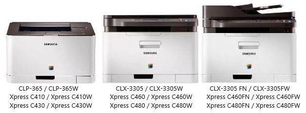 CLP-360, CLP-360N, CLP-365, CLP-365N, CLP-365W, CLX-3300, CLX-3300N, CLX-3300FN, CLX-3300FW, CLX-3305, CLX-3305N, CLX-3305FN, CLX-3305FW, xPress C410, C410W, C460, C460W, C460FW, C430, C430W, C480FW,