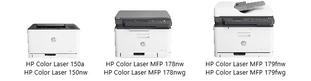 HP Color Laser 150a, HP Color Laser 150nw, HP Color Laser 178nw, HP Color Laser 178nwg, HP Color Laser 179fnw, HP Color Laser 179fwg,